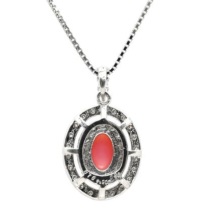ネックレス コンクパール プラチナ プラチナシルバー×ピンク Pt900×Pt850 コンビ パヴェダイヤ ヘイロー オーバル型 【中古】