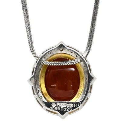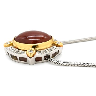 ネックレス ジェダイト 翡翠 ヒスイ ダイヤモンド 赤×イエローゴールド×プラチナシルバー K18YG×Pt850 オーバルペンダント スネークチェーン 【中古】