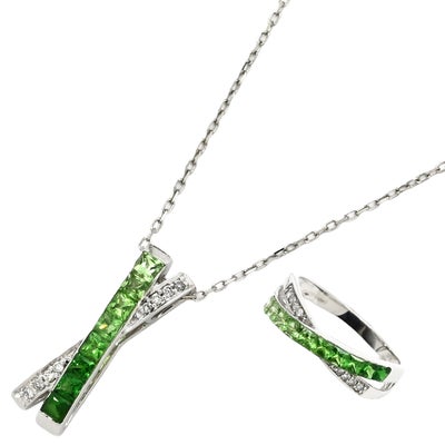 ネックレス ダイヤ ツァボライト リング セット グリーン×ホワイトゴールド K18WG Au750 18K グリーングロシュラーガーネット 【中古】