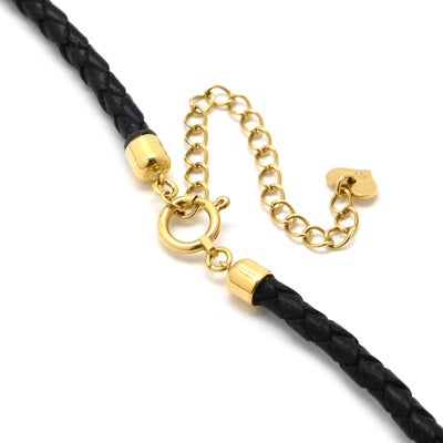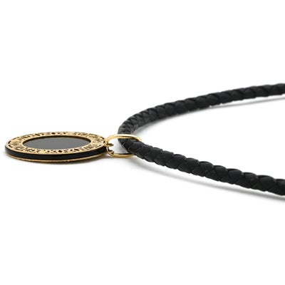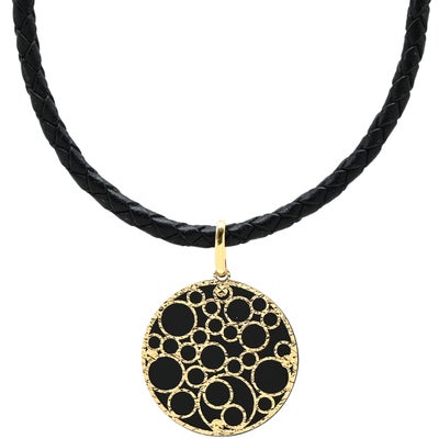 ネックレス サークル型ペンダント イエローゴールド×ブラック Au750 18K ラウンド 透かし模様 革紐 【中古】