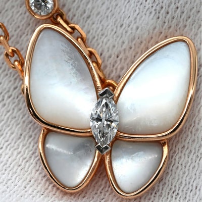 ヴァンクリーフアーペル Van Cleef & Arpels ネックレス ペンダント ホワイト×ローズゴールド ローズゴールド PG 18K シェル 蝶 ダイヤモンド VCARO8FO00 【中古】