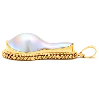 ペンダントトップ マベパール イエローゴールド ハーフパール ネックレストップ 【中古】