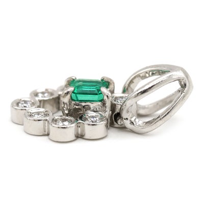 ペンダントトップ エメラルド ダイヤ プラチナシルバー 【中古】