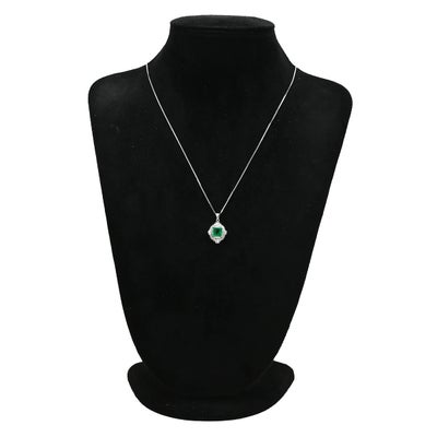 ペンダントトップ エメラルド ダイヤ エメラルドグリーン×プラチナシルバー 緑 ネックレストップ エメラルドカット スクエア プラチナム 【中古】