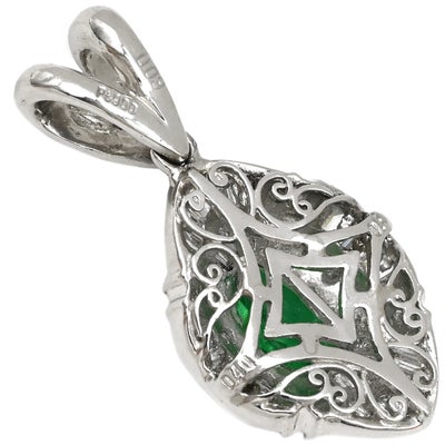 ペンダントトップ エメラルド プラチナシルバー 緑 グリーン ダイヤ ネックレストップ 【中古】