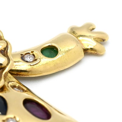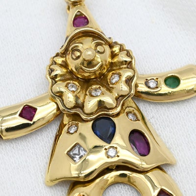 ペンダントトップ イエローゴールド×マルチカラー Au750 18K 18金 ダイヤ マルチストーン ダンシングピエロモチーフ アンティーク 【中古】