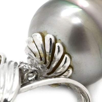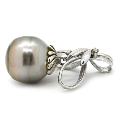 ペンダントトップ 黒蝶パール 15mm ダイヤモンド ホワイトゴールド 真珠 シルバー プラチナ ネックレストップ オフラウンドシェイプ リボン 【中古】
