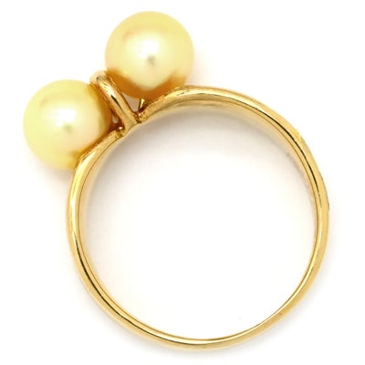 リング 指輪 ゴールデンパール リング イエローゴールド あこやパール 2粒 2P 750 YG 金 13号 【中古】