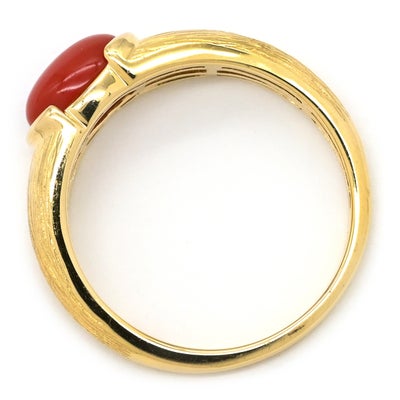 リング 指輪 珊瑚 リング イエローゴールド 赤 サンゴ 14号 【中古】