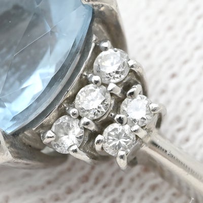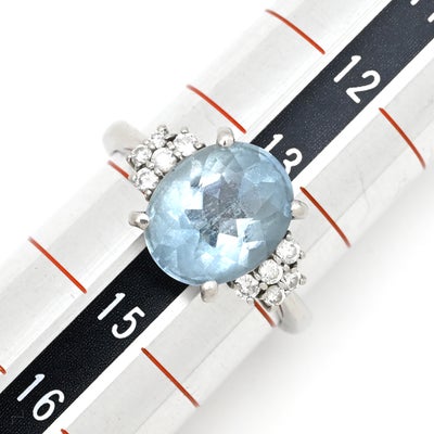 リング 指輪 アクアマリン ダイヤリング プラチナシルバー ブルー 青 13.5号 【中古】