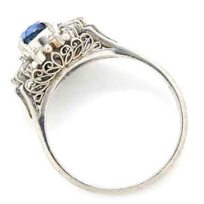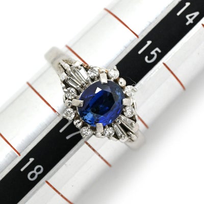 リング 指輪 ブルーサファイア ダイヤリング プラチナシルバー 青 16号 【中古】