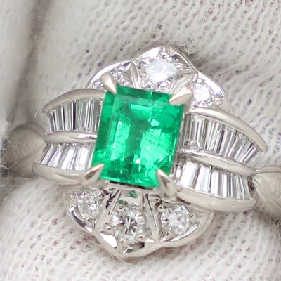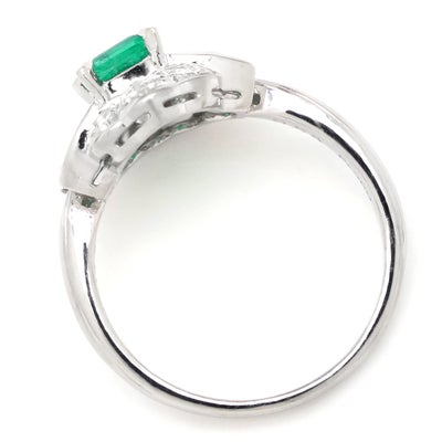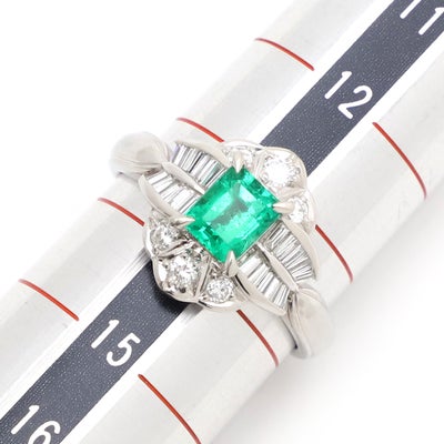 リング 指輪 エメラルド ダイヤモンド リング プラチナシルバー グリーン 緑 13.5号 【中古】
