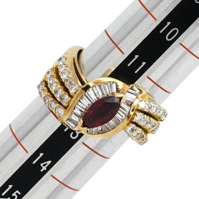 リング 指輪 ルビー ダイヤ リング イエローゴールド Au750 18K 18金 レッド 赤 12号 【中古】