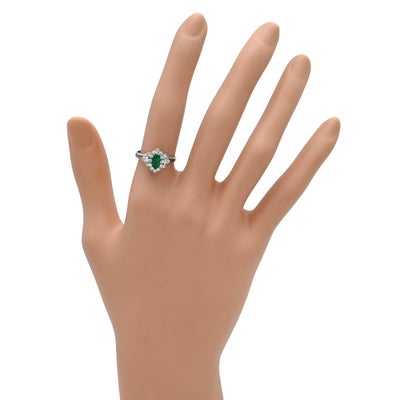 リング 指輪 エメラルド ダイヤ リング プラチナシルバー グリーン 緑 マーキスカット PM900 11号 【中古】
