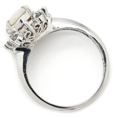 リング 指輪 オパール ダイヤリング プラチナシルバー 白 ホワイト オーバル 7号 【中古】