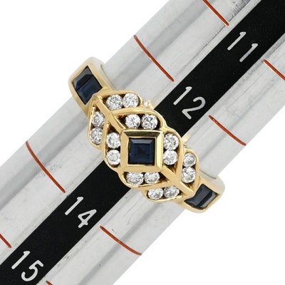 リング 指輪 ブルーサファイア ダイヤ イエローゴールド×ブルー Au750 18K 18金 ダイヤ ジュエリー ブルー 13号 【中古】
