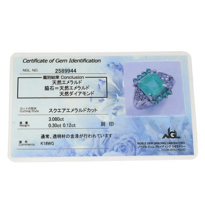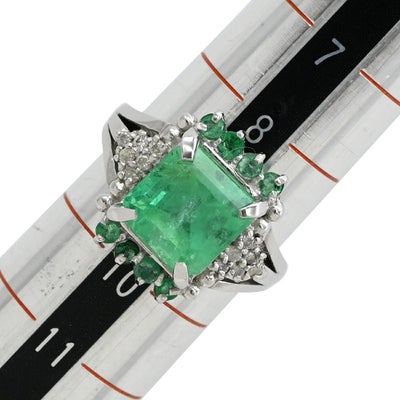 リング 指輪 エメラルド ダイヤモンド リング ホワイトゴールド グリーン 緑 スクエア 9号 【中古】