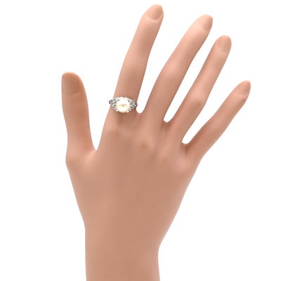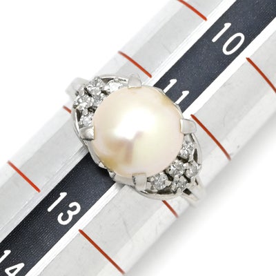 リング 指輪 ホワイト×プラチナシルバー プラチナム 1P 1粒 パール 真珠 あこや アコヤ ダイヤ 11.5号 【中古】