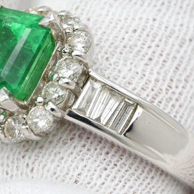 リング 指輪 エメラルド ダイヤモンド リング プラチナシルバー グリーン 緑 スクエア 17.5号 【中古】