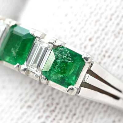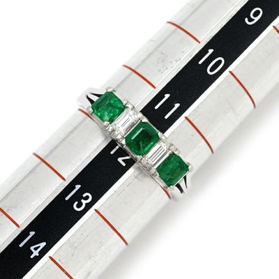 リング 指輪 エメラルド0.54ct ダイヤモンド プラチナシルバー グリーン 緑 Pm900 エメラルドカット バケットカット 11.5号 【中古】