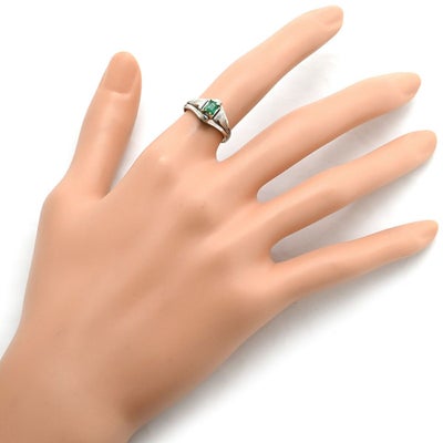 リング 指輪 エメラルド リング ホワイトゴールド グリーン 緑 スクエア バケットミックスカット 1石 11号 【中古】