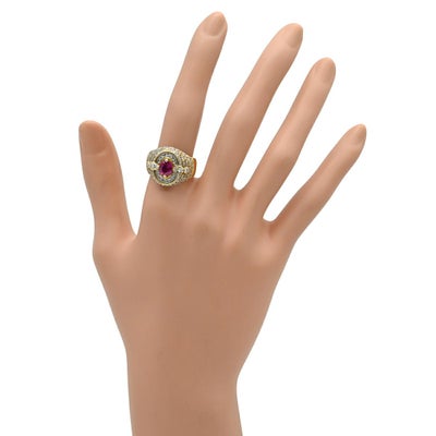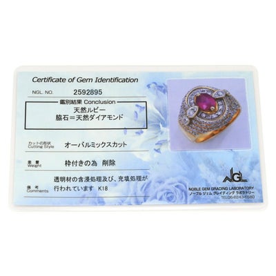 リング 指輪 ルビー ダイヤ レッド×イエローゴールド イエローゴールド Au750 18K 18金 赤 オーバルミックスカット 16.5号 【中古】