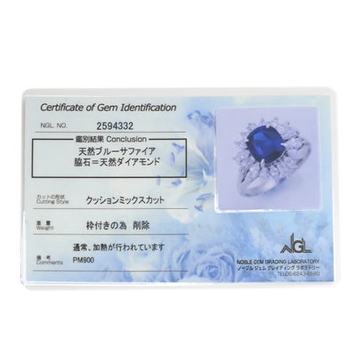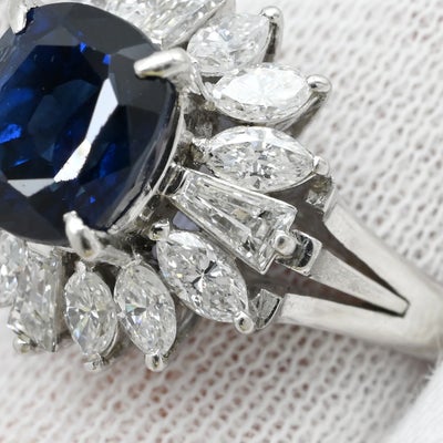 リング 指輪 ブルーサファイア ダイヤ ブルー×プラチナシルバー クッションカット Pt900 プラチナム 青 マーキス バゲットカット フラワーモチーフ 13号 【中古】