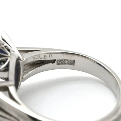 リング 指輪 スターサファイア ダイヤ ブルー×プラチナシルバー 13.50ct オーバルカボションカット Pt900 青 艶消し加工 マット仕上げ 天然石 10号 【中古】
