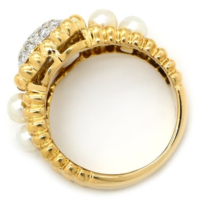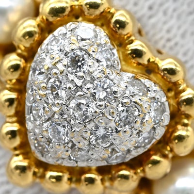 リング 指輪 ダイヤ イエローゴールド×ホワイト パヴェ YG Au750 18K 18金 ハートモチーフ 真珠 パール4粒 8.5号 【中古】