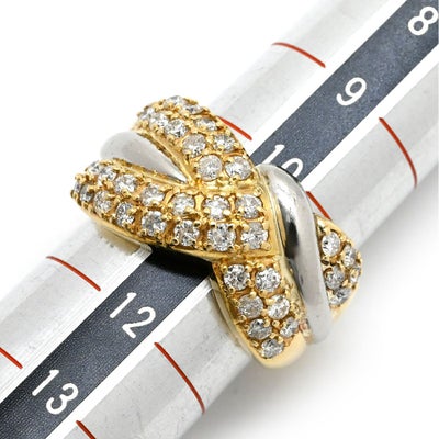 リング 指輪 ダイヤモンド 1.01ct イエローゴールドXプラチナシルバー パヴェダイヤ 18K 750 YG プラチナ コンビ ダイア 10.5号 【中古】