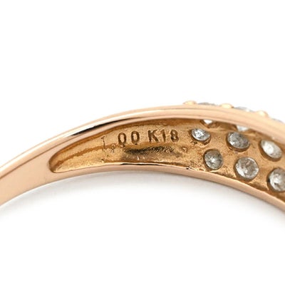 リング 指輪 ドーム型ダイヤリング ピンクゴールド K18 Au750 PG 1.00ct パヴェ ダイヤモンド ドームリング 15号 【中古】