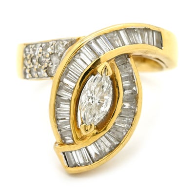 リング 指輪 ダイヤモンド 0.88ct 032ct イエローゴールド K18 Au750 YG デザインリング マーキスカット テーパー 10号 【中古】