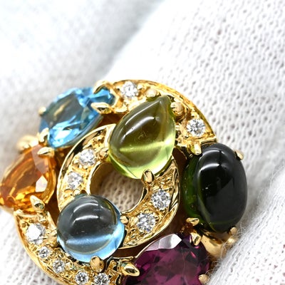 ブルガリ BVLGARI リング 指輪 アストラーレ チェルキ イエローゴールド ダイヤ 色石 マルチストーン 10号 【中古】