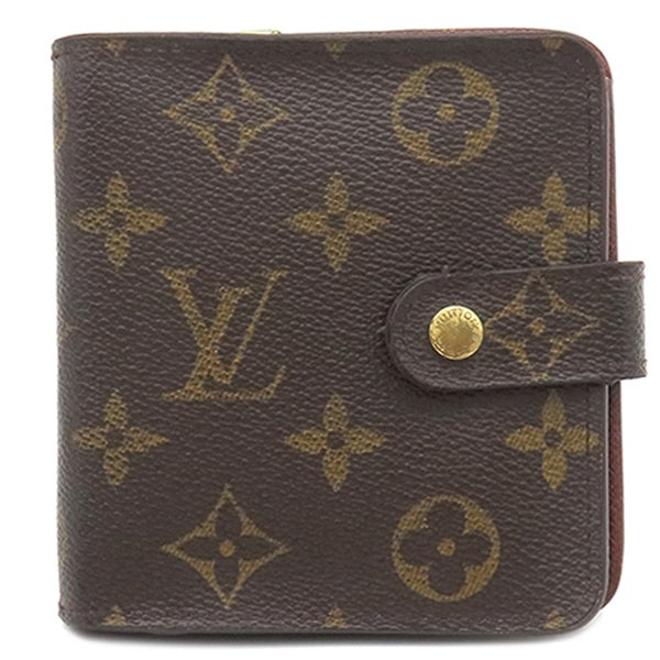 【SALE】 ルイヴィトン LOUIS VUITTON 二つ折り財布 コンパクトジップ モノグラムキャンバス モノグラム ゴールド金具 茶 M61667 MI1012 【中古】