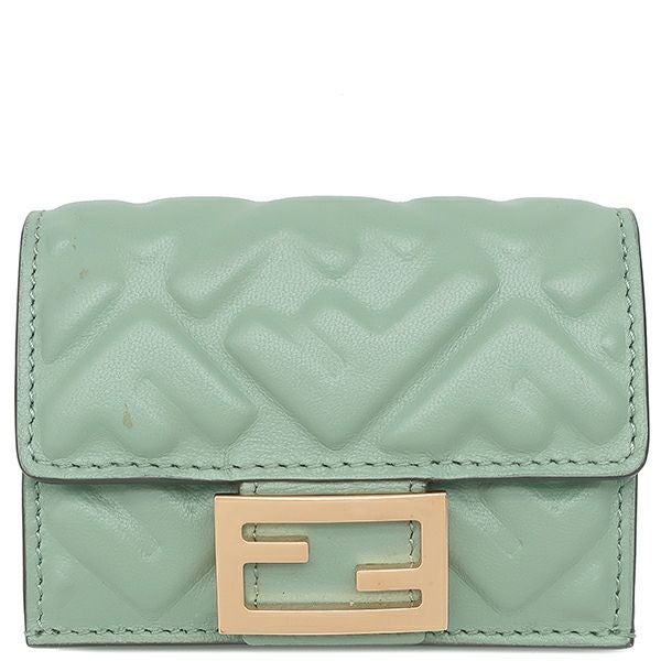 フェンディ FENDI 三つ折り財布 バゲット マイクロ トライフォールド レザー グリーン系 ゴールド金具 緑 【箱】 【中古】