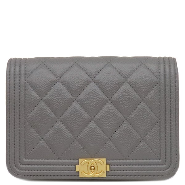 シャネル CHANEL チェーンウォレット ボーイシャネル チェーンショルダー ミニ キャビアスキン グレー ヴィンテージ金具 ココマーク AP2464 ランダムシリアル 【中古】