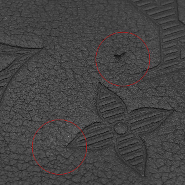 【外側】表面に擦れや小傷、微かなラメの付着、ポケットに浮き、コバに剥げやヒビ、金具に塗装剥がれ【内側】小銭汚れや押し跡【におい】僅かな香水のにおい移り