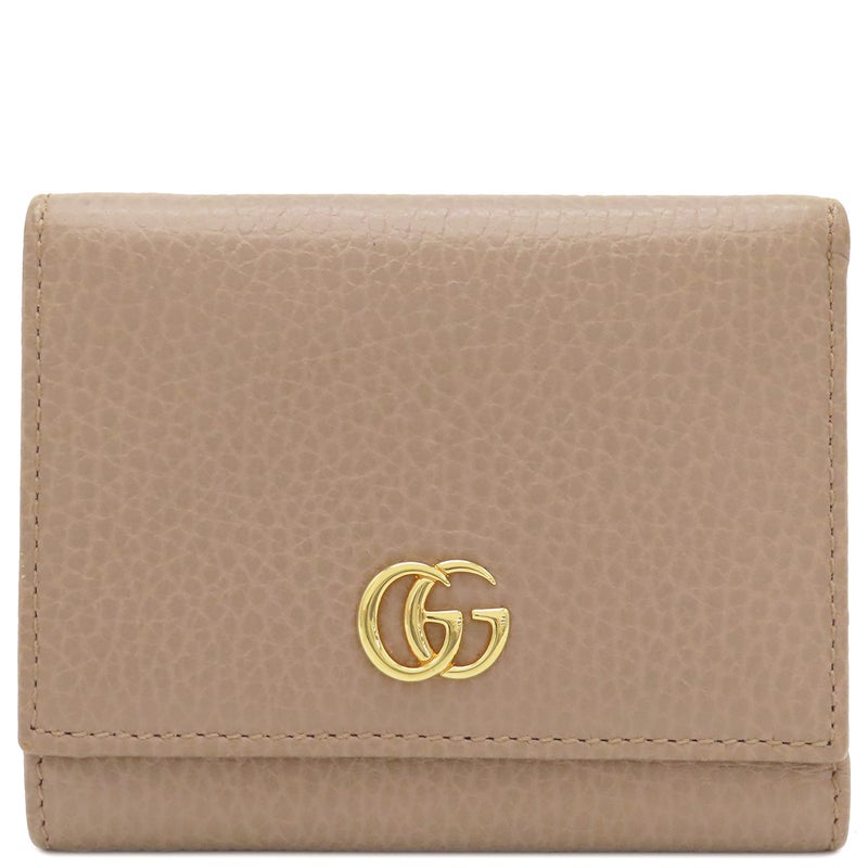 グッチ GUCCI 三つ折り財布 プチマーモント コンパクトウォレット レザー ベージュ ゴールド金具 474746 【中古】