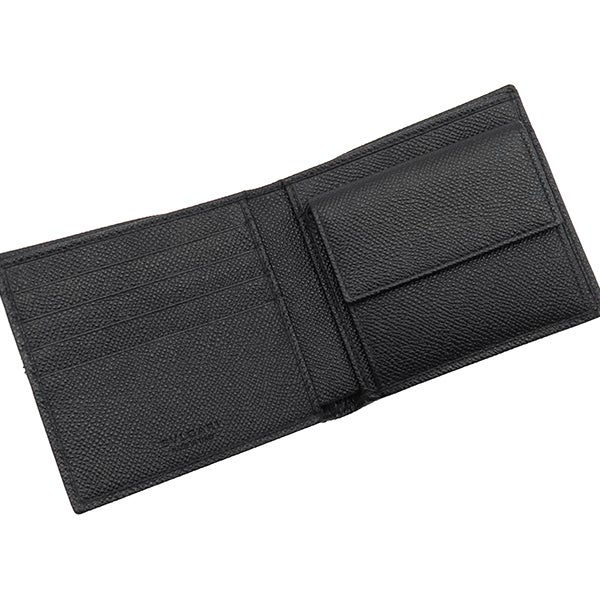 ブルガリ BVLGARI 二つ折り財布 マン コンパクトウォレット グレインカーフレザー ブラック シルバー金具 黒 二つ折り 札入れ 294730 【箱】 【中古】