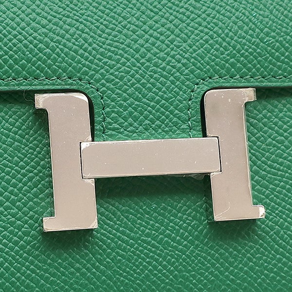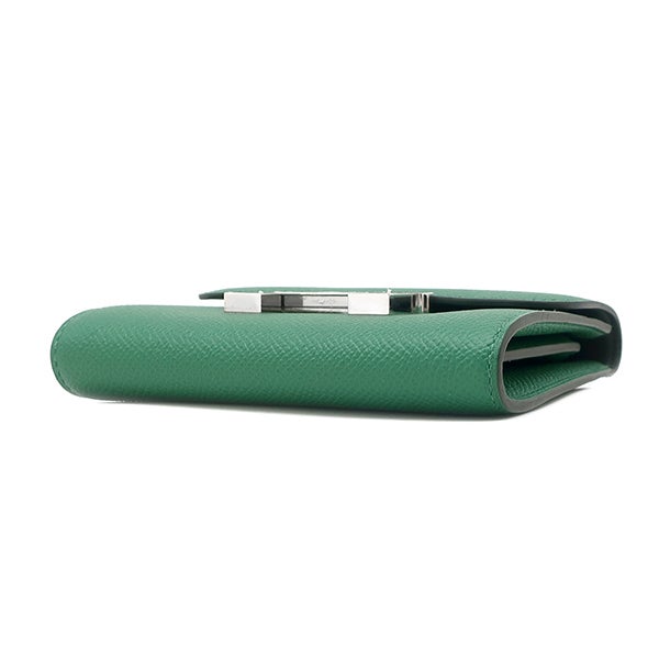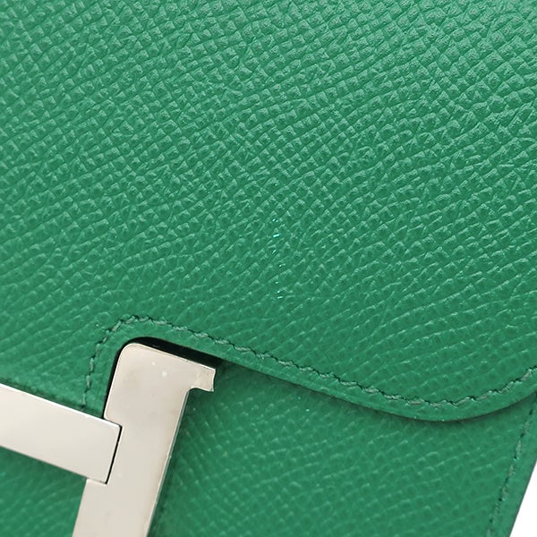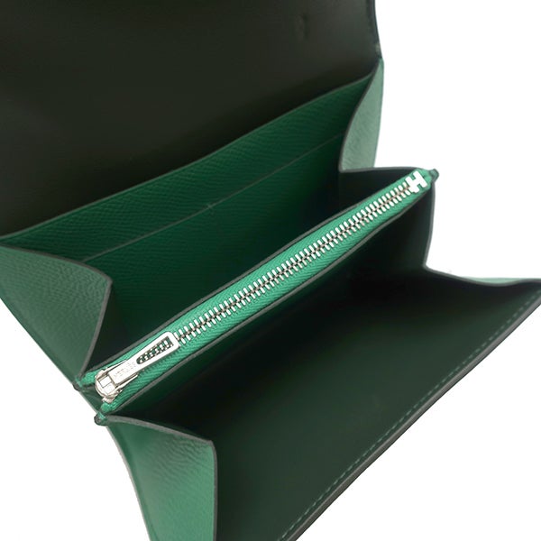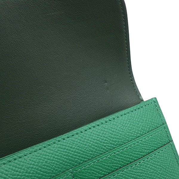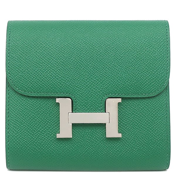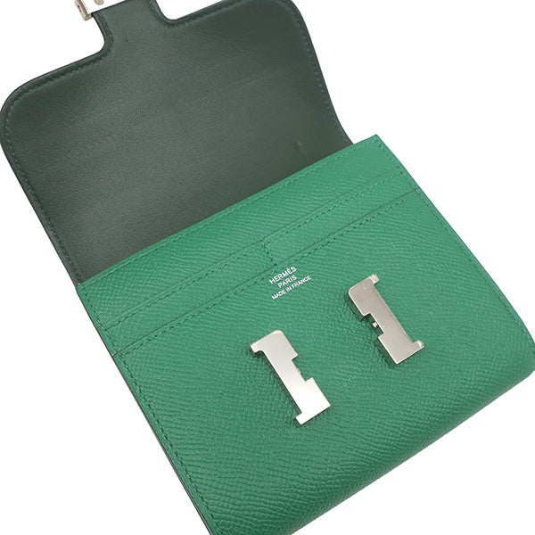 エルメス HERMES 二つ折り財布 コンスタンス コンパクト ヴォーエプソン ヴェールヴェルティゴ シルバー金具 緑 コンパクトウォレット A 【中古】