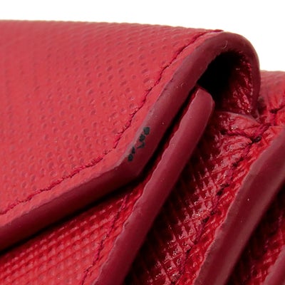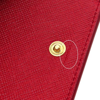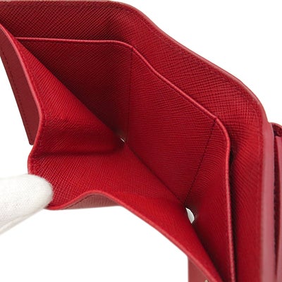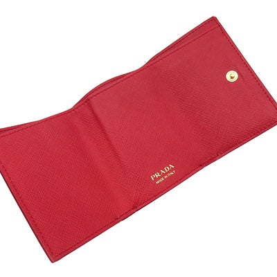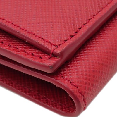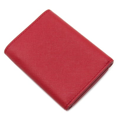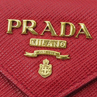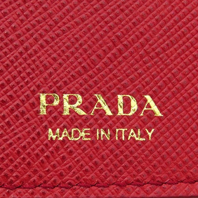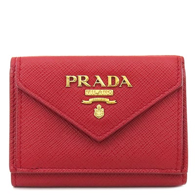 プラダ PRADA 三つ折り財布 サフィアーノ メタルロゴ レザー レッド ゴールド金具 コンパクトウォレット 赤 1MH021 【中古】