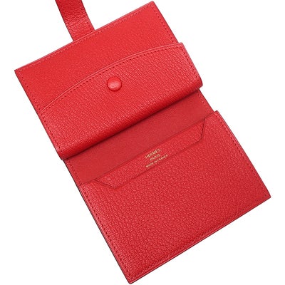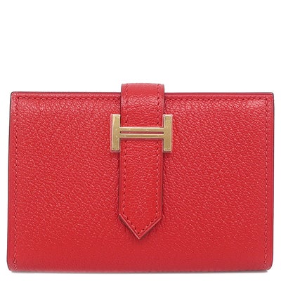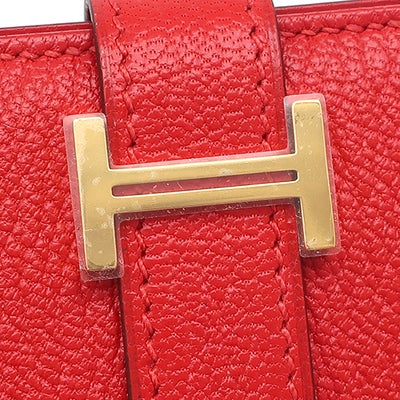 エルメス HERMES 二つ折り財布 ベアンミニ シェーブル ルージュラデュー ゴールド金具 赤 コンパクト 2025年製 K 【箱】 【中古】