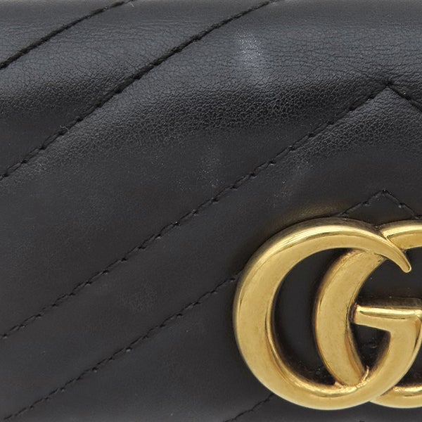 グッチ GUCCI 三つ折り財布 GGマーモント レザー ブラック ゴールド金具 黒 474802 【保存袋】 【中古】