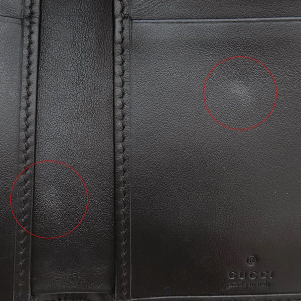 【外側】若干の型崩れ、表面に擦れや薄汚れ、金具に擦れやくすみ【内側】レザーに擦れや薄汚れ、ファスナープルに薄汚れやクセ、僅かな小銭汚れ【におい】保管臭 ※保存袋につりがございます。