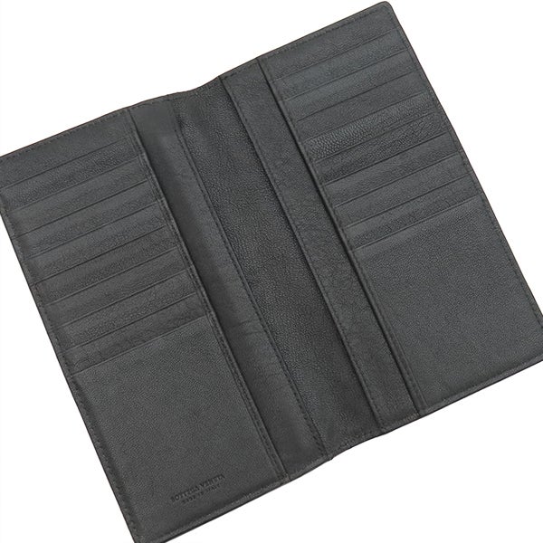 ボッテガヴェネタ BOTTEGA VENETA 長財布 イントレチャート レザー ブラック×ブラウン×カーキ 黒 茶 緑 二つ折り 札入れ 【箱】 【中古】