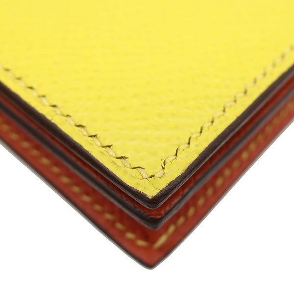 エルメス HERMES 長財布 ベアンスフレ ヴェルソ ヴォーエプソン ライム×テールバテュー シルバー金具 黄色 朱赤 バイカラー 二つ折財布 Y刻印 【箱】 【中古】