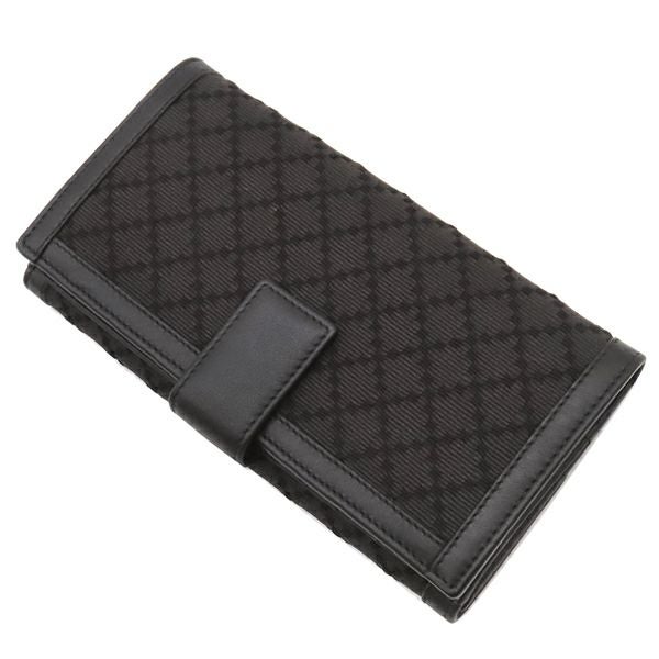 グッチ GUCCI 長財布 ディアマンテ ファブリック レザー ウール ブラック×ブラウン ゴールド金具 黒 茶 ダイヤ柄 272602 【箱】 【中古】