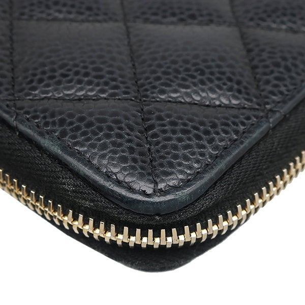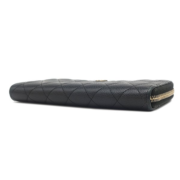 シャネル CHANEL 長財布 マトラッセ ロングジップウォレット レザー キャビアスキン ブラック ゴールド金具 ラウンドファスナー ココマーク A50097 22****** 【中古】