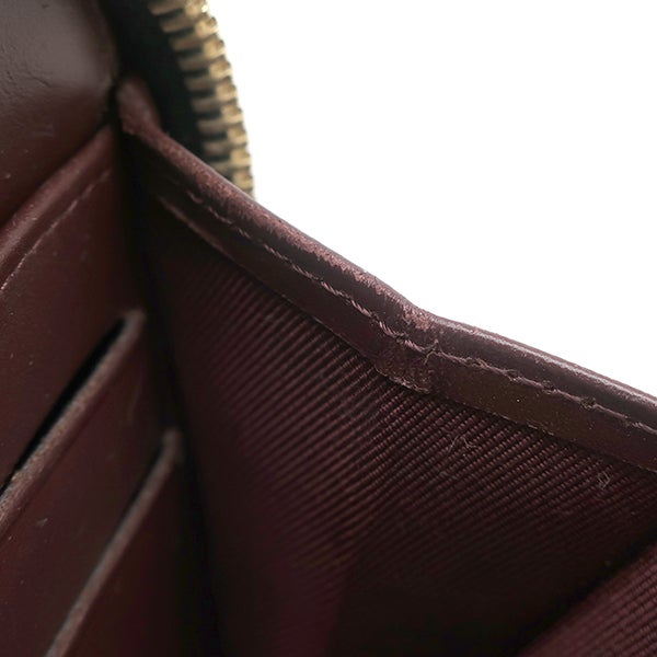 【外側】四つ角にスレ、角周りにスレ、ファスナー部分に薄汚れ、ファスナープルに劣化と毛羽立ち、金具にキズとメッキがれ【内側】スレ、汚れ、小銭入れに薄汚れ、ファスナープルにヒビとシワ【におい】コイン臭