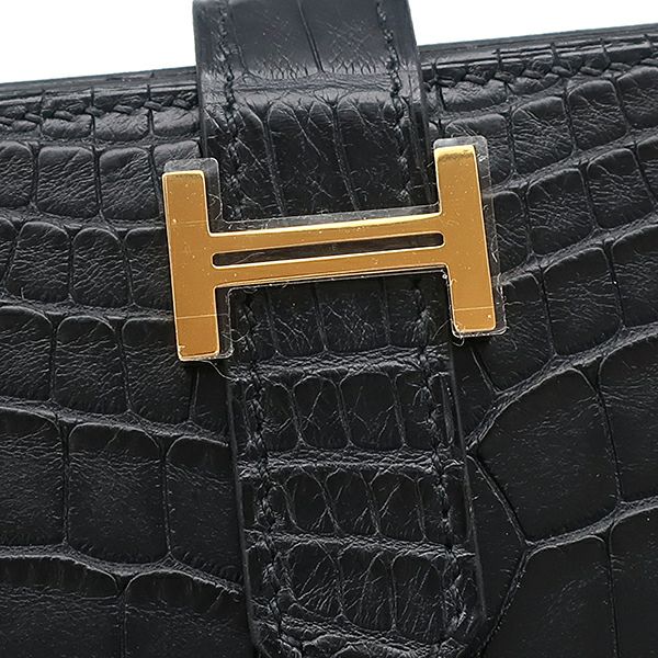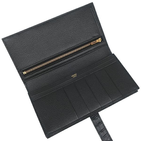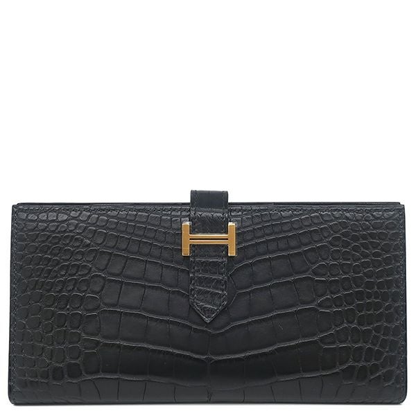 エルメス HERMES 長財布 ベアンスフレ アリゲーターマット ブラック ゴールド金具 新品 未使用 黒 クロコ 二つ折り財布 K刻印(2025年製) 【箱】 【中古】